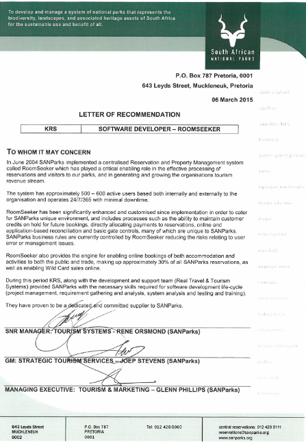 Both RTTS and SANParks continue to work together to ensure RoomSeeker remains agile, operational, and relevant to the company’s needs.